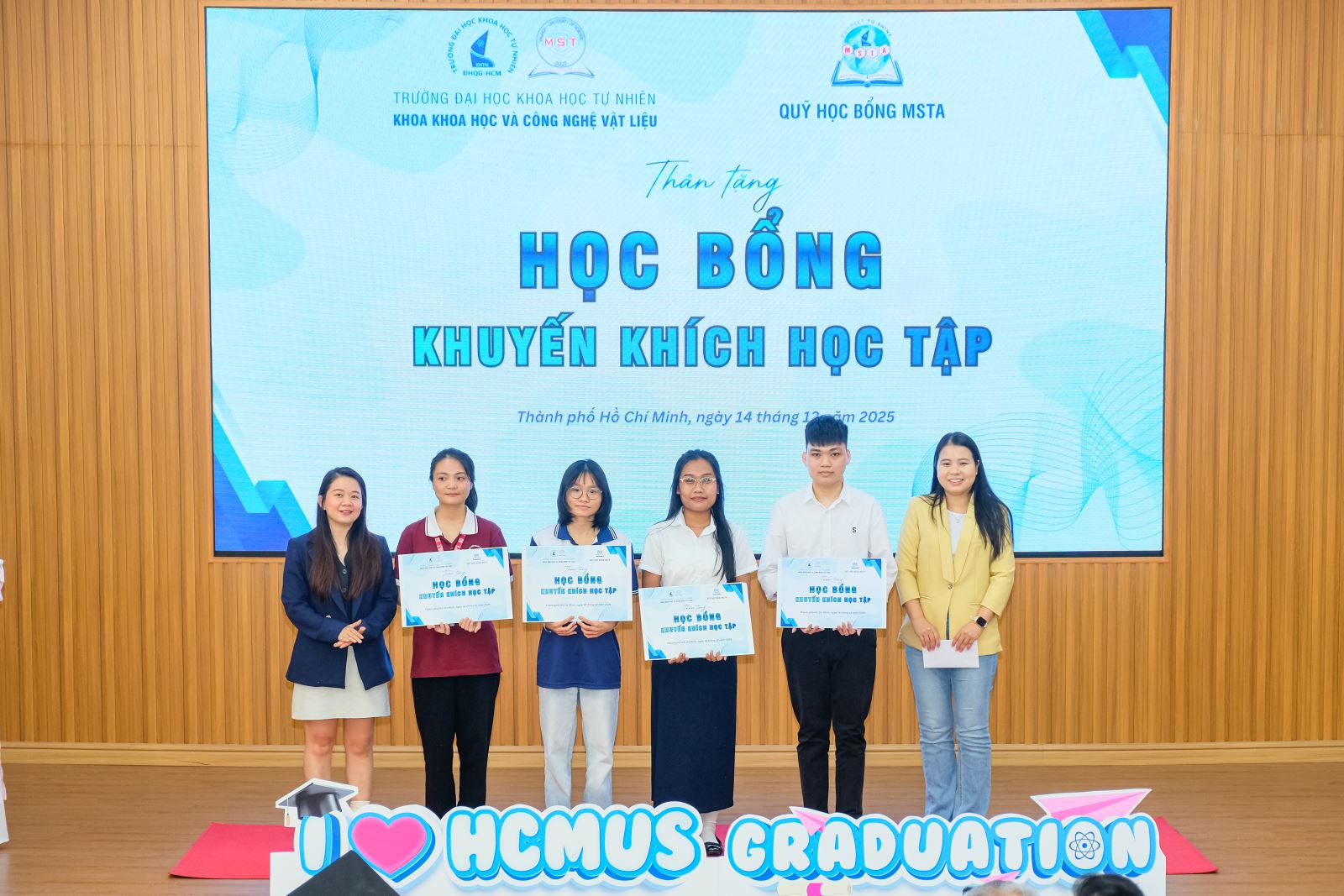 🎁 Bên cạnh đó, Quỹ học bổng Cộng đồng Cựu sinh viên Khoa KH&CNVL (MSTA) đã trao 5 suất học bổng ý nghĩa cho những sinh viên có hoàn cảnh khó khăn nhưng luôn kiên cường vượt thử thách, nỗ lực vươn lên trong học tập. Những suất học bổng không chỉ mang giá trị vật chất, mà còn thể hiện tình cảm, trách nhiệm và sự tiếp nối bền chặt giữa các thế hệ sinh viên Khoa KH&CNVL