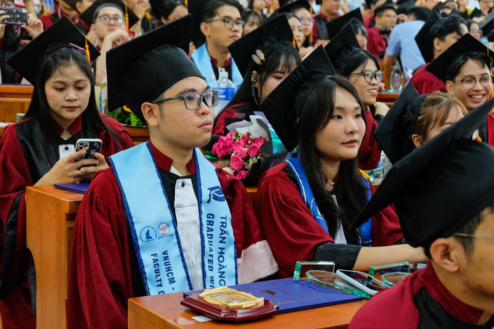 🏅 Trong suốt chặng đường đại học, các sinh viên đã không ngừng phấn đấu học tập, miệt mài nghiên cứu và kiên trì vượt qua những khó khăn trong giảng đường cũng như phòng thí nghiệm; đồng hành cùng các bạn là sự tận tâm, nhiệt huyết và dìu dắt Thầy Cô, những người đã truyền đạt tri thức, nuôi dưỡng đam mê và tiếp thêm động lực để sinh viên vững bước trên con đường khoa học. Trên nền tảng của hành trình nỗ lực ấy, buổi lễ đã trang trọng tuyên dương các sinh viên đạt danh hiệu Thủ khoa ngành và Thủ khoa chuyên ngành, ghi nhận những thành tích học tập xuất sắc cùng tinh thần ham học hỏi và vươn lên.