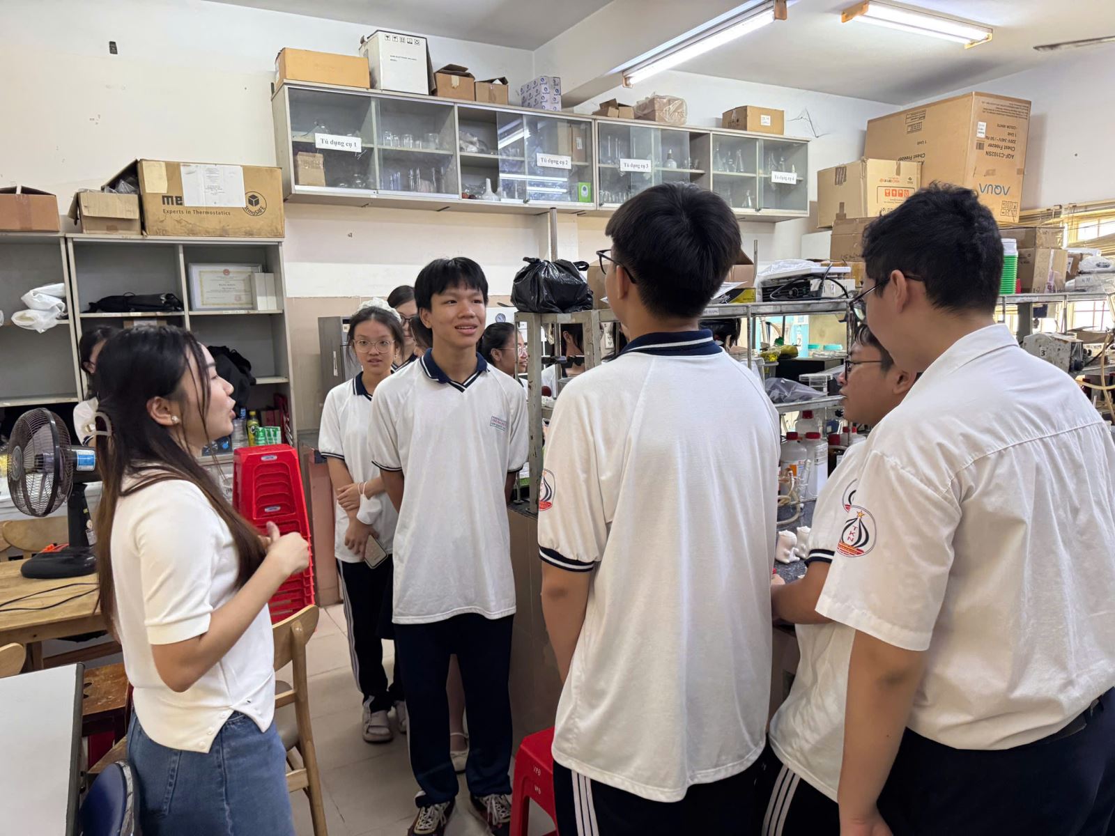 Trong chuyến tham quan, các em học sinh đã có cơ hội khám phá hai phòng thí nghiệm của Khoa:
